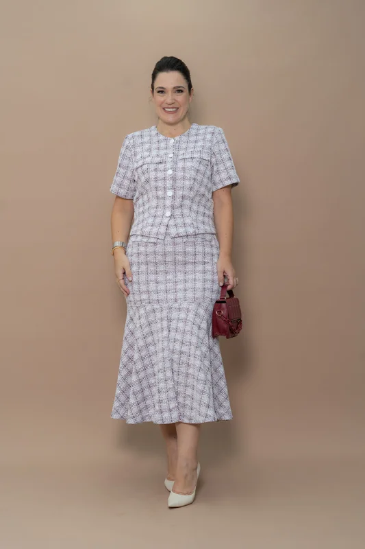 A linha complementar contempla saias, blusas, blazers, casacos e calças, sempre com modelagens confortáveis e versáteis.
