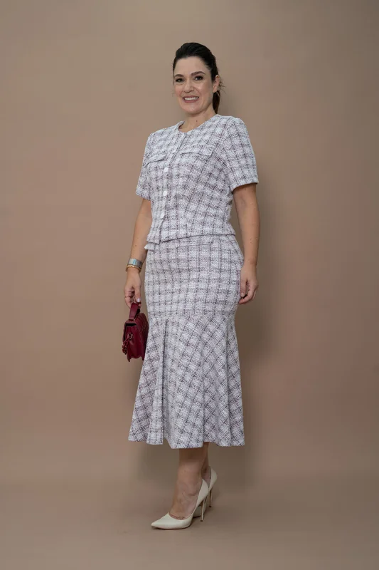 As peças utilizam crepe, laise, renda e linho, adequadas para eventos formais e ocasiões religiosas.