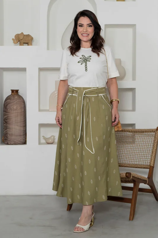 Seja para um look mais casual ou para um evento mais formal, a saia de linho é uma escolha certeira.