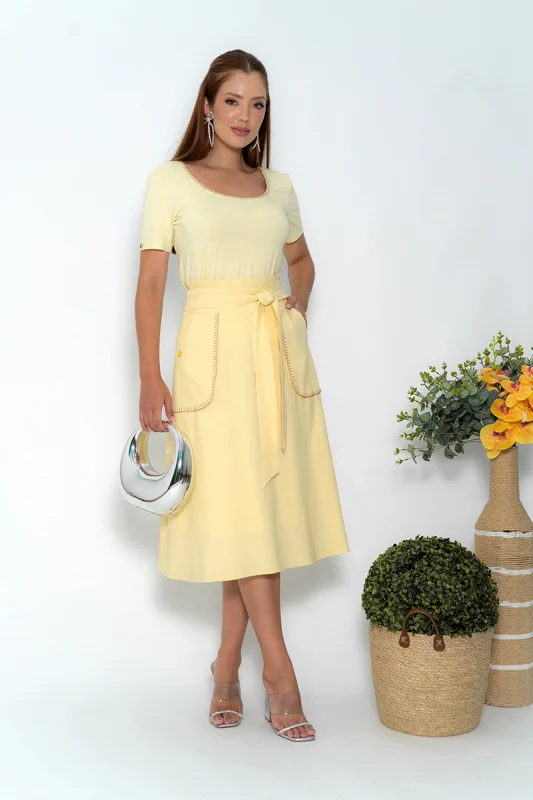 Saia de linho apresenta sofisticação atemporal com toque natural e textura leve, ideal para ambientes formais e ocasiões que pedem elegância discreta.