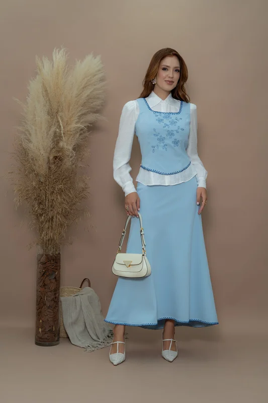 Já a calça ou saia alinhada completa o conjunto, assegurando um visual equilibrado e harmonioso.